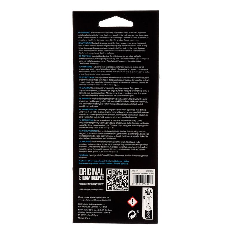 https://www.puckator.it/airf151-profumatore-per-auto-loriginale-stormtrooper-elmo-mirtillo.htmlAIRF151Profumatore per Auto - L'Originale Stormtrooper - Elmo - Mirtillo<p>Profumatore per Auto - L'Originale Stormtrooper - Elmo - Mirtillo</p><ul><li><strong>Materiali:</strong> Cartoncino e Profumo</li><li><strong>Fragranza:</strong> Mirtilli</li><li><strong>Informazioni sulla Sicurezza:</strong> Tenere lontano dalla portata dei bambini. Le informazioni di sicurezza e la lista di ingredienti della fragranza sono disponibili sulla confezione. Non lasciare il prodotto appoggiato su nessuna superficie poichè gli oli essenziali del Profumatore per Auto potrebbero causare danni e macchie.</li><li><strong>Informazioni sulla Licenza:</strong> <p>Questo è un prodotto con licenza ufficiale e può essere venduto in tutto il mondo ad eccezione degli USA. Se l’ordine che state effettuando è per gli Stati Uniti vi chiediamo di non acquistare questo articolo e se tenterete di farlo, verrà rimosso dal vostro ordine Per maggiori informazioni, visita la nostra pagina informativa.</li></ul><p><strong>Informazioni Aggiuntive:</strong></p><ul><li><strong>Vuoi informazioni su come inoltrare un ordine utilizzando il sito internet di Puckator?</strong> Leggi la nostra <a href="/advice-centre" target="_blank" title="Guida all'Acquisto su Puckator Italia">guida all'acquisto.</a></li></ul></ul>https://www.puckator.it/media/catalog/product/A/I/AIRF151_001_1708618429.jpg0.58instock0.580.5800Puckator000https://www.puckator.it/media/catalog/product/A/I/AIRF151_001_1708618429.jpg158761660117193194091941019411/Profumatori per Auto/L'Originale Stormtrooper/Temporary Sale - FR/Nuovamente Disponibili2022-10-28T12:30:05+0000