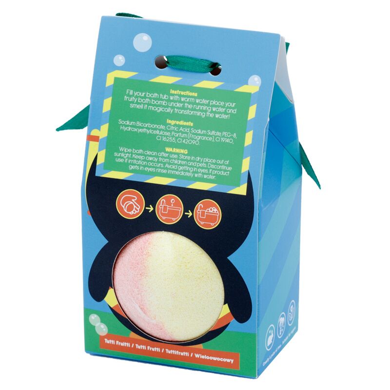 Ingredienti di Tutti Frutti Penguin: Sodium Bicarbonate, Citric Acid, Sodium Sulfate, Sodium Carbonate, Glycerin, PEG-400, Water (Aqua) and Fragrance (Parfum)