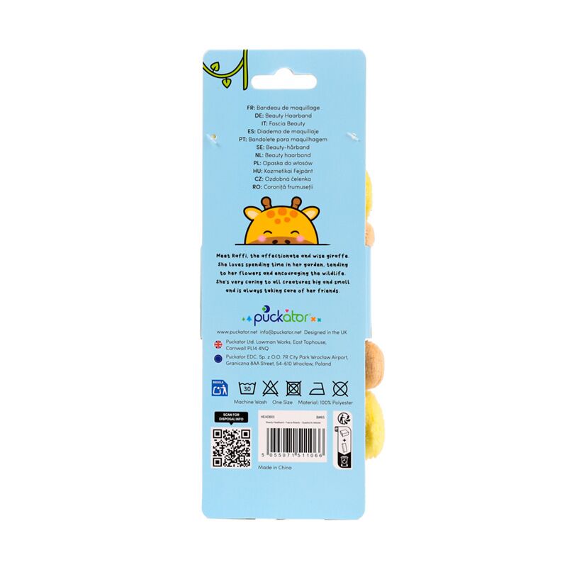 https://www.puckator.it/headb05-fascia-per-capelli-in-peluche-raffi-la-giraffa-animali-dolci.htmlHEADB05Fascia per Capelli in Peluche - Raffi la Giraffa - Animali Dolci <p>Fascia per Capelli in Peluche - Raffi la Giraffa - Animali Dolci </p><ul><li><strong>Materiale:</strong> Poliestere</li><li><strong>Taglia:</strong> Taglia Unica</li></ul><p><strong>Informazioni Aggiuntive:</strong></p><ul><li><strong>Vuoi informazioni su come inoltrare un ordine utilizzando il sito internet di Puckator?</strong> Leggi la nostra <a href="/advice-centre" target="_blank" title="Guida all'Acquisto su Puckator Italia">guida all'acquisto.</a></li></ul></ul>https://www.puckator.it/media/catalog/product/H/E/HEADB05_001_1757425066.jpg2.46instock2.462.4600Puckator000https://www.puckator.it/media/catalog/product/H/E/HEADB05_001_1757425066.jpg142181674118419/Accessori da Borsa e di Bellezza/Animali Dolci2025-03-04T11:43:57+0000