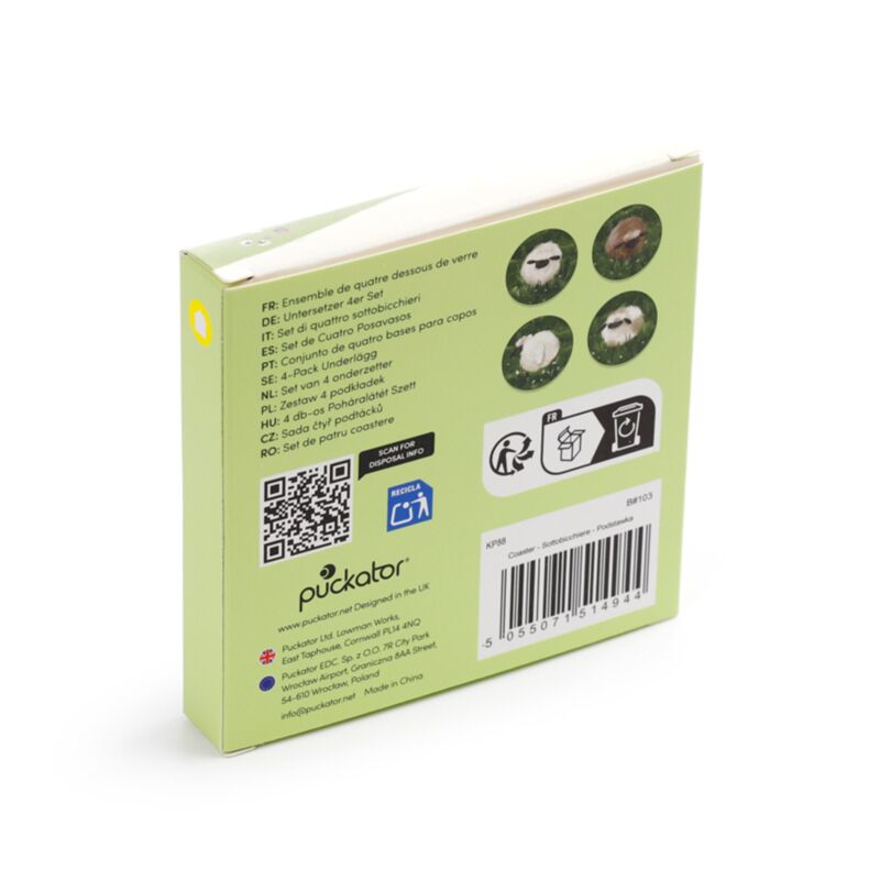 https://www.puckator.it/kp88-set-di-4-sottobicchieri-in-sughero-pecora-sheep.htmlKP88Set di 4 Sottobicchieri in Sughero - Pecora SHEEP<p>Set di 4 Sottobicchieri in Sughero - Pecora SHEEP</p><ul><li><strong>Materiali:</strong> Sughero, Carta</li><li><strong>Quantità nel Set:</strong> 4</li><li><strong>Informazioni sulla Licenza:</strong> Questo è un prodotto con licenza ufficiale e può essere venduto in tutto il mondo.</li></ul><p><strong>Informazioni Aggiuntive:</strong></p><ul><li><strong>Vuoi informazioni su come inoltrare un ordine utilizzando il sito internet di Puckator?</strong> Leggi la nostra <a href="/advice-centre" target="_blank" title="Guida all'Acquisto su Puckator Italia">guida all'acquisto.</a></li></ul></ul>https://www.puckator.it/media/catalog/product/K/P/KP88_001_1774517494.jpg2.24instock2.242.2400Puckator000https://www.puckator.it/media/catalog/product/K/P/KP88_001_1774517494.jpg18270182711891718918/Accessori per la Cucina/Ingrosso Souvenir Fattorie Didattiche e Agriturismi2025-10-22T14:42:39+0000