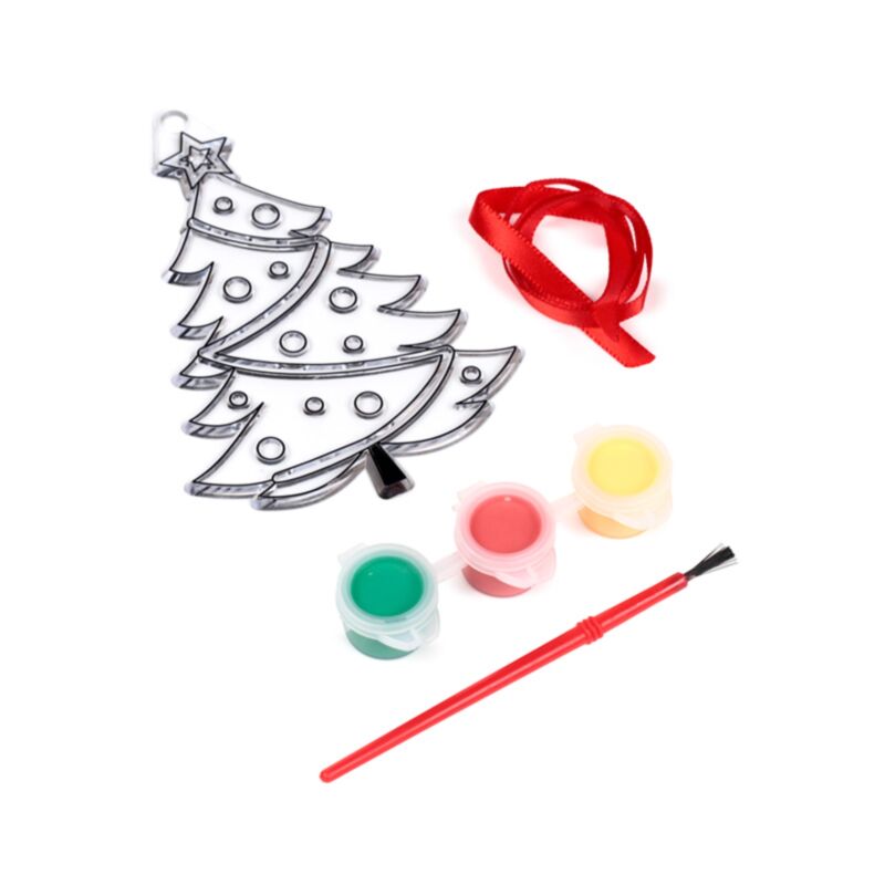 Il Set Contiene: Decorazione in Plastica, Cordino, Pennello e 3 colori.